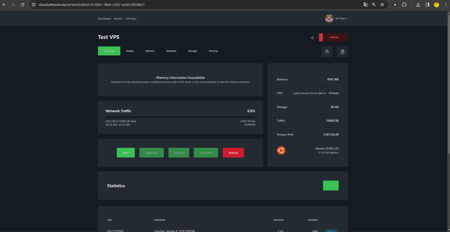 Kies je VPS en klik op Manage.