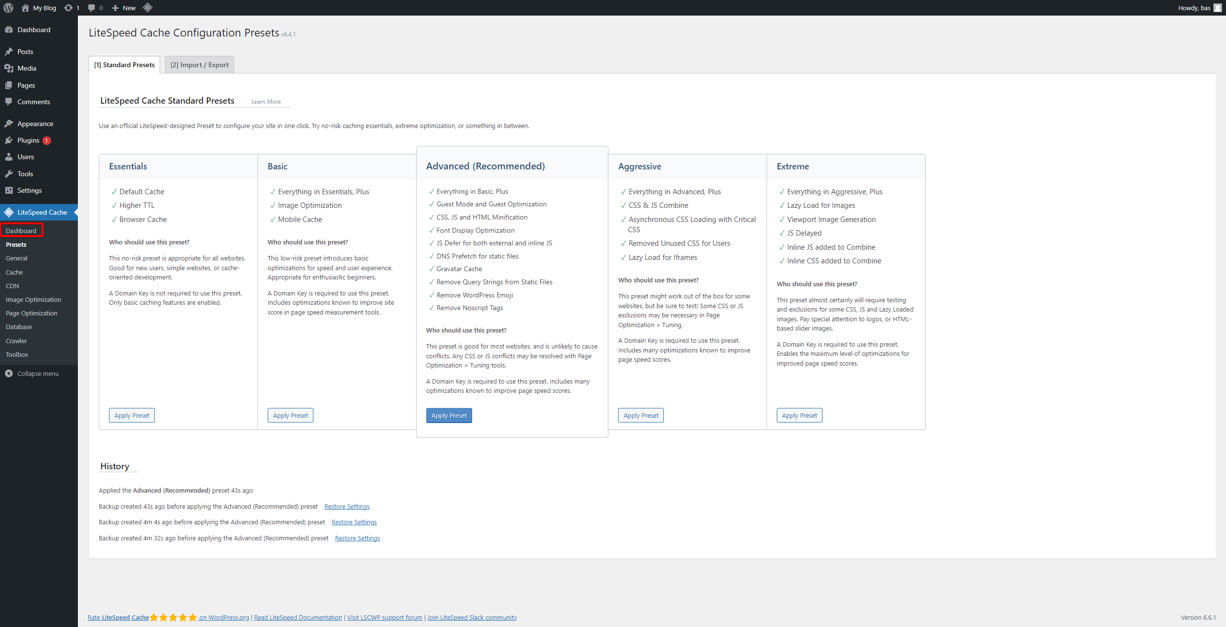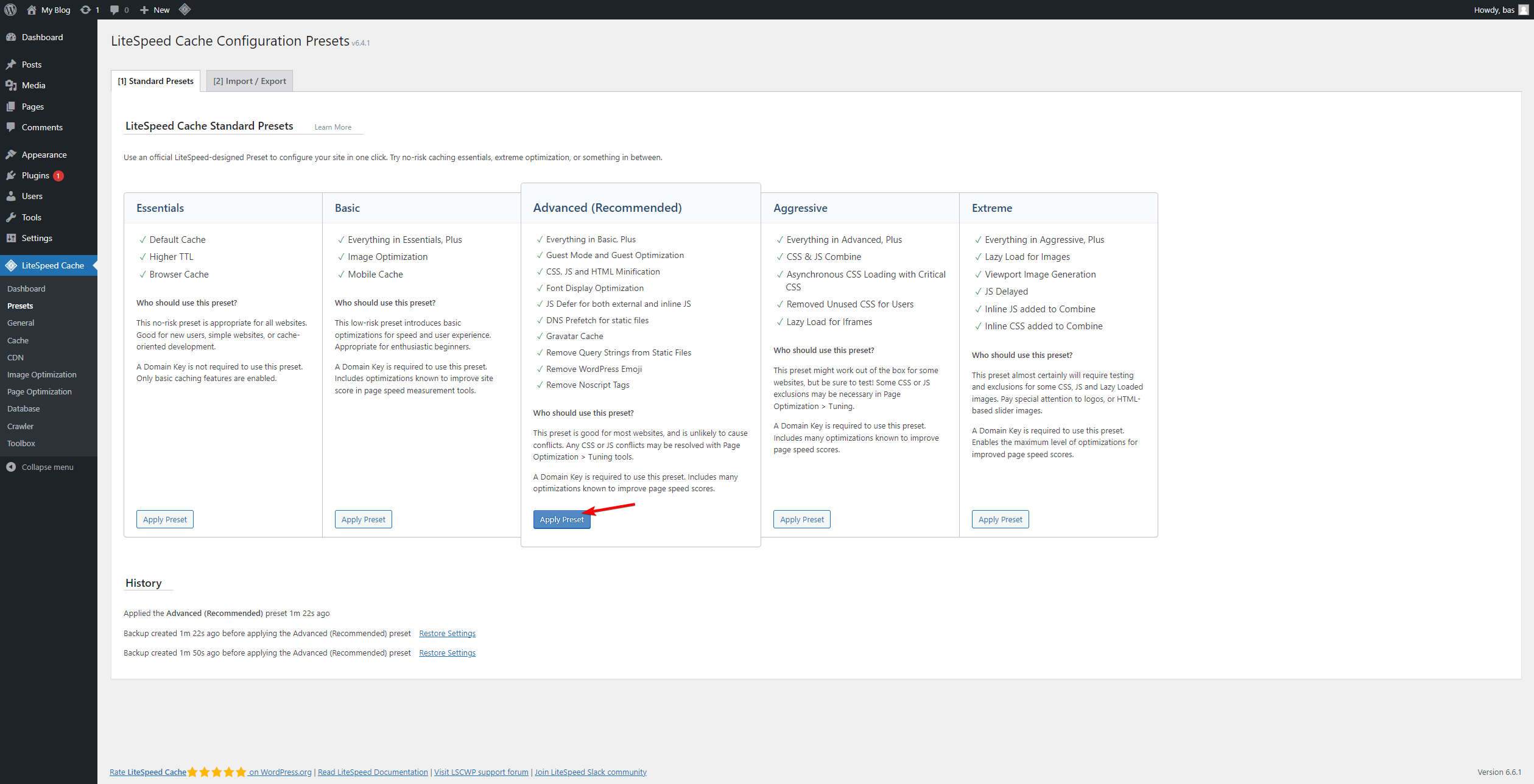 Wij kiezen hier voor de aanbevolen Advanced preset.