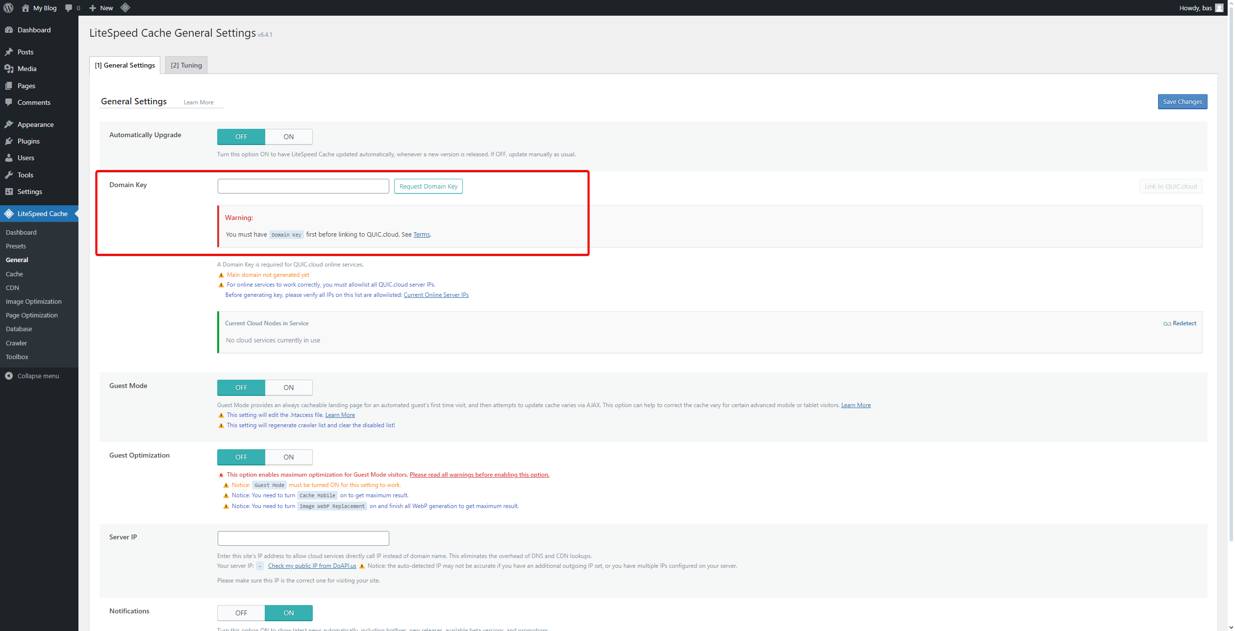 - Klik nu op LiteSpeed Cache links in je beeld.