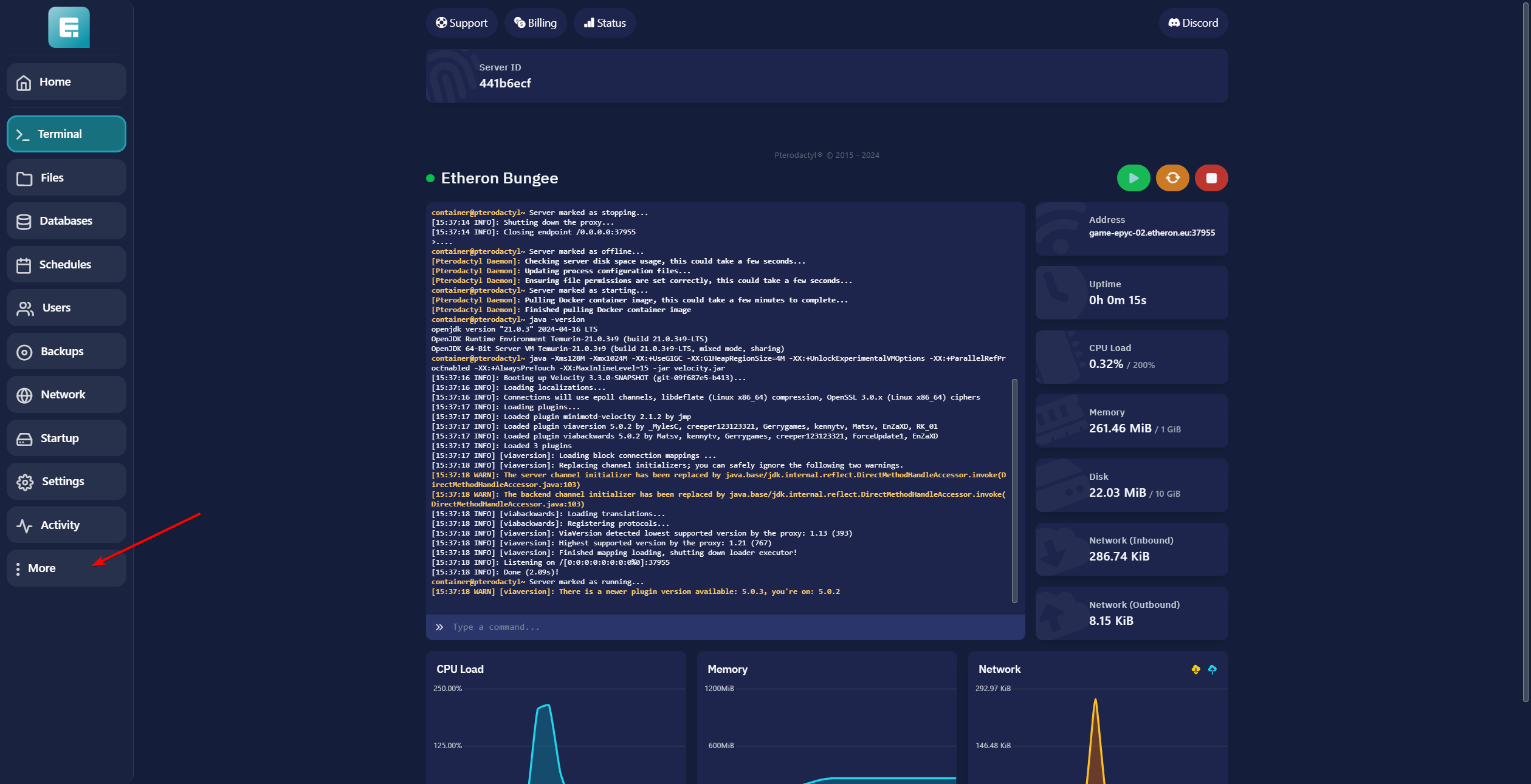 Log in op het gamepaneel en ga naar de gewenste Bungee-server.