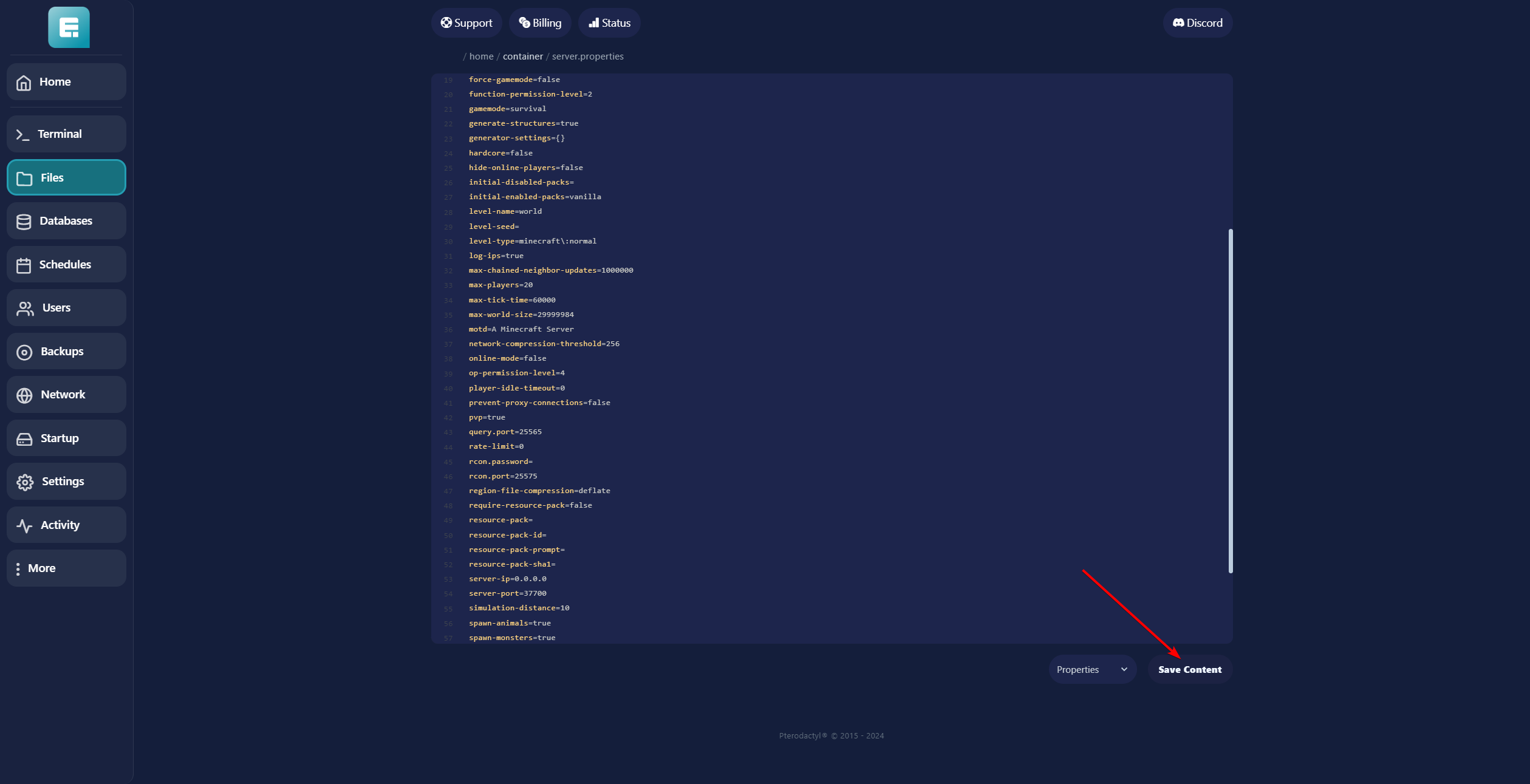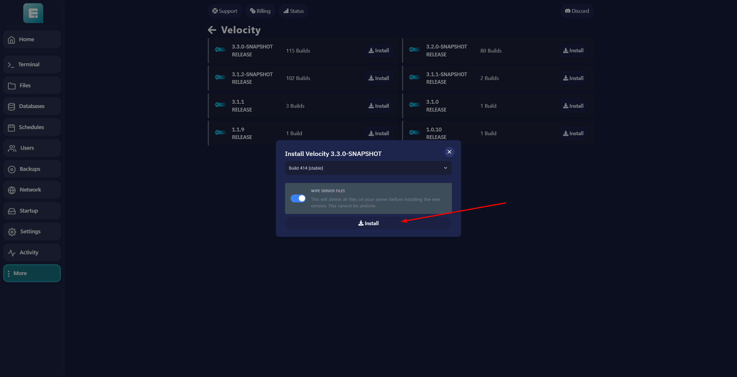 Let op! Als je op **WIPE SERVER FILES **klikt, wordt alles verwijderd. Laat WIPE SERVER FILES uitstaan als je je wereld, plugins, etc. wilt behouden.