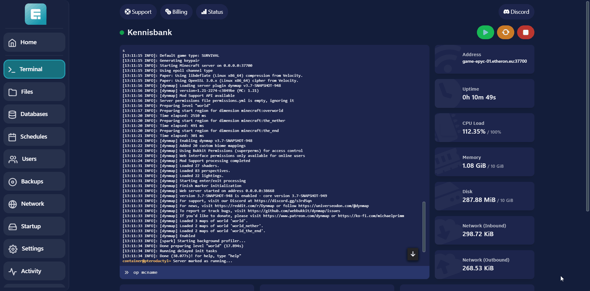 Navigeer naar jouw gewenste server op het Gamepaneel.