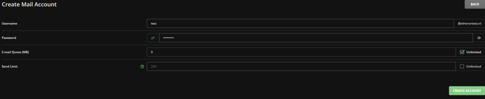 Klik op de groene knop om het account aan te maken.