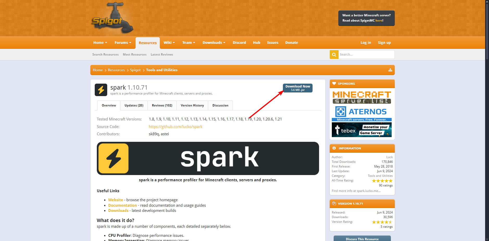 Spark downloaden op een Bukkit/ Spigot/ Paper server:
