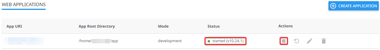 Node.js versie: Selecteer de juiste Node.js versie voor je toepassing. DirectAdmin beveelt versie 10.24.1 aan.