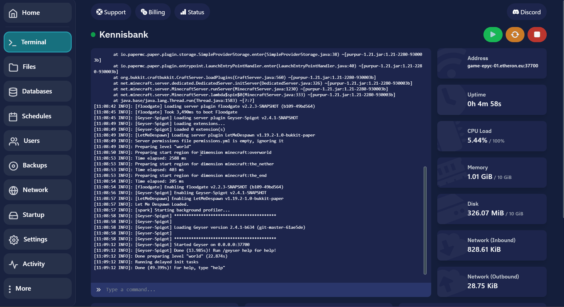 Navigeer naar je gewenste server op het gamepaneel.