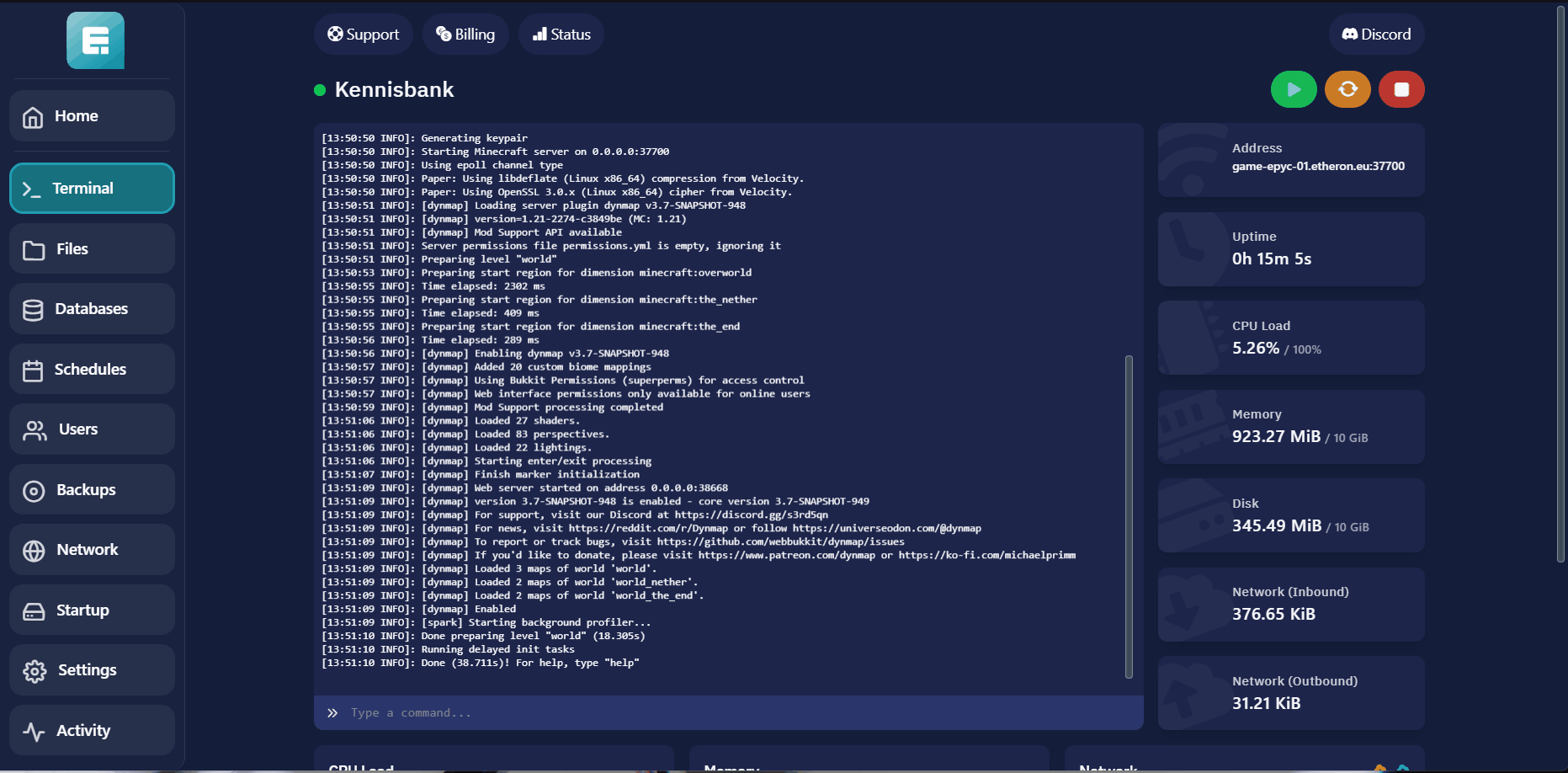 - Nu kan je de server weer aanzetten.