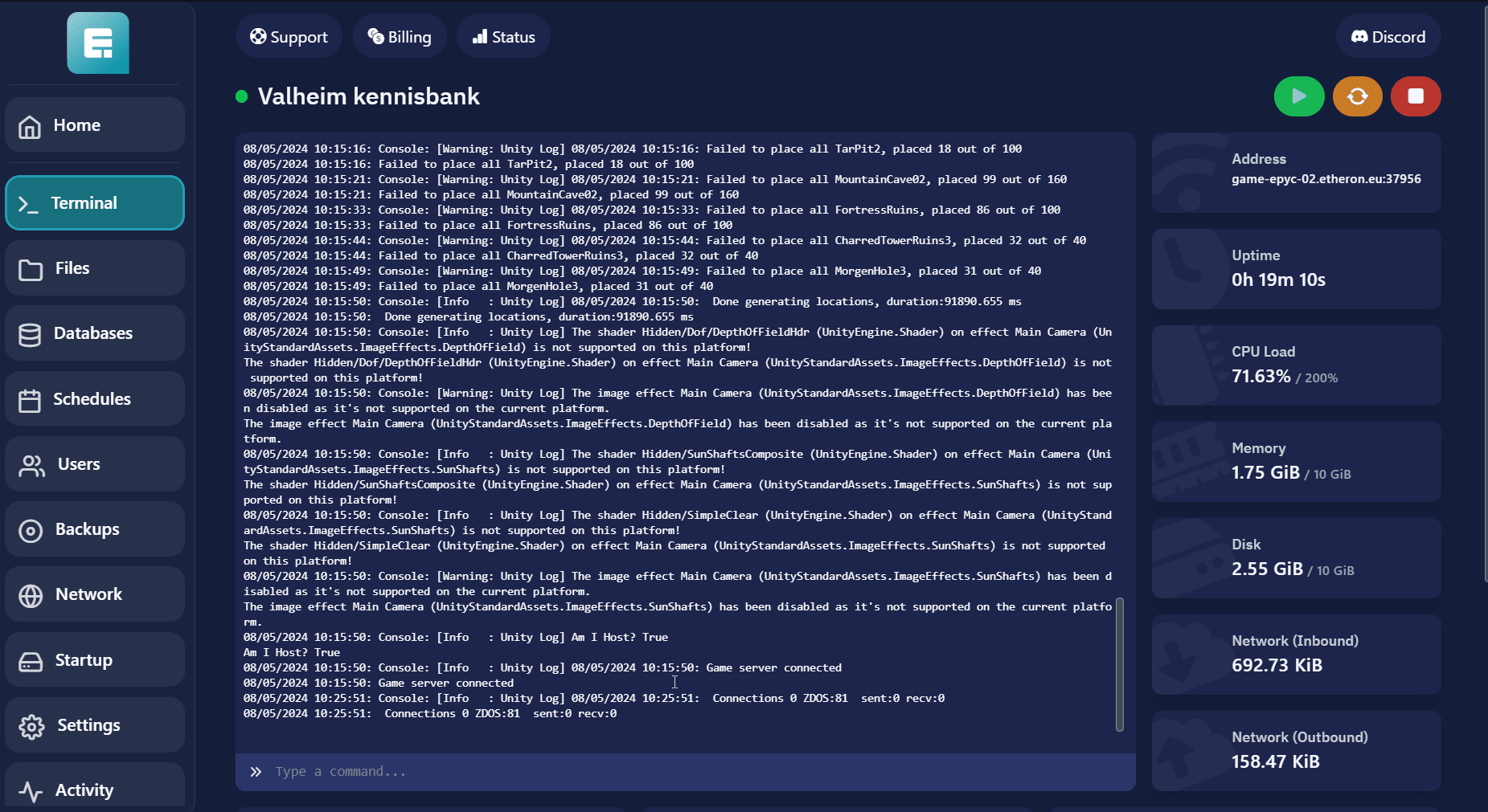 Navigeer naar jouw gewenste Valheim server op het gamepaneel.