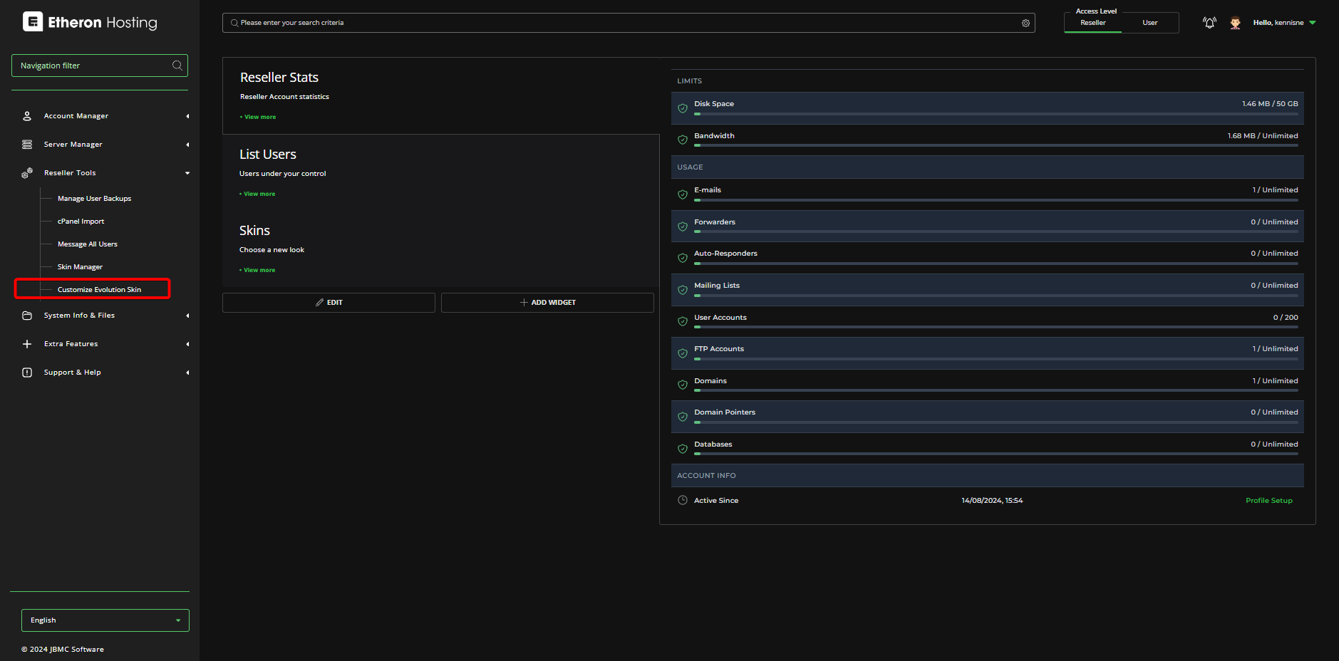 Hier wordt uitgelegd hoe je het uiterlijk van je DirectAdmin paneel veranderd voor jou en je klanten.