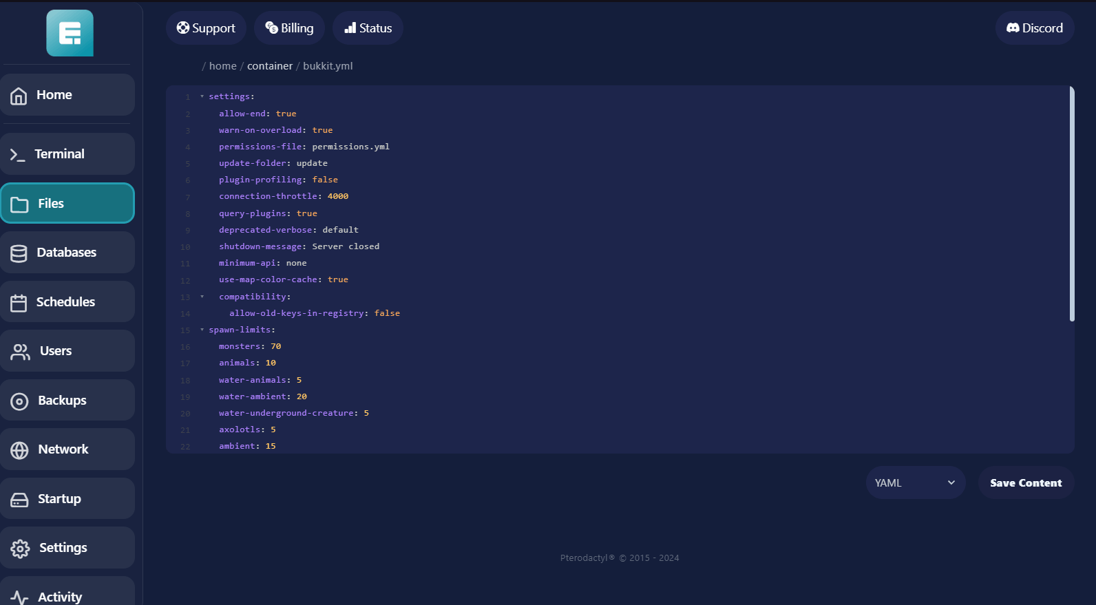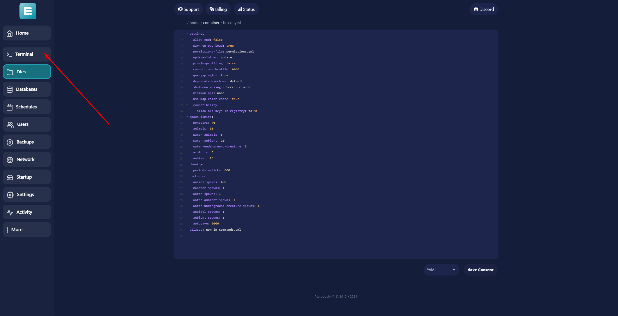 - Open het bestand **bukkit.yml **door erop te klikken.