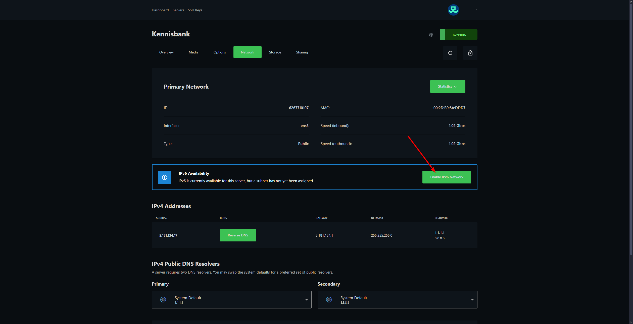 - Klik op Enable IPv6 Network.