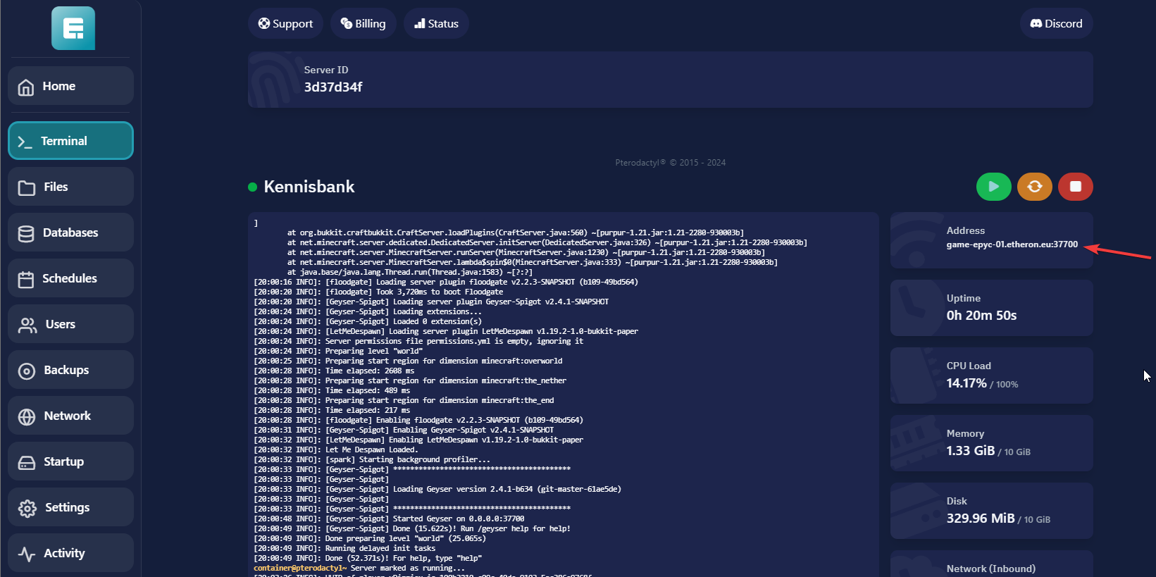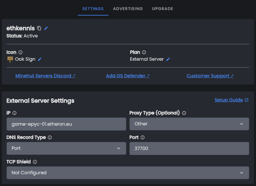 Maak nu een ticket aan om de startup parameters te laten updaten!Geef in de ticket aan dat het om een minehut external server gaat met een paper server!Een medewerker zal de startup parameters updaten naar: