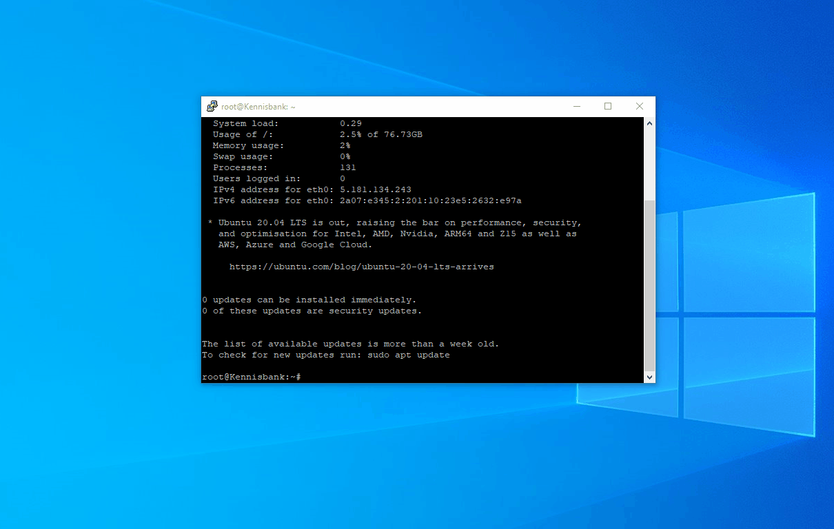 - Maak verbinding met je VPS via SSH, dit kan je gemakkelijk doen met het programma Putty.