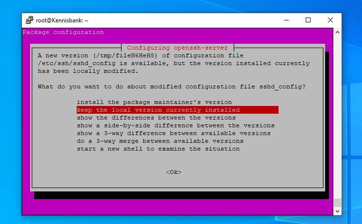 - Kies bij Package Configuration, Keep the local version currently installed en klik op Enter