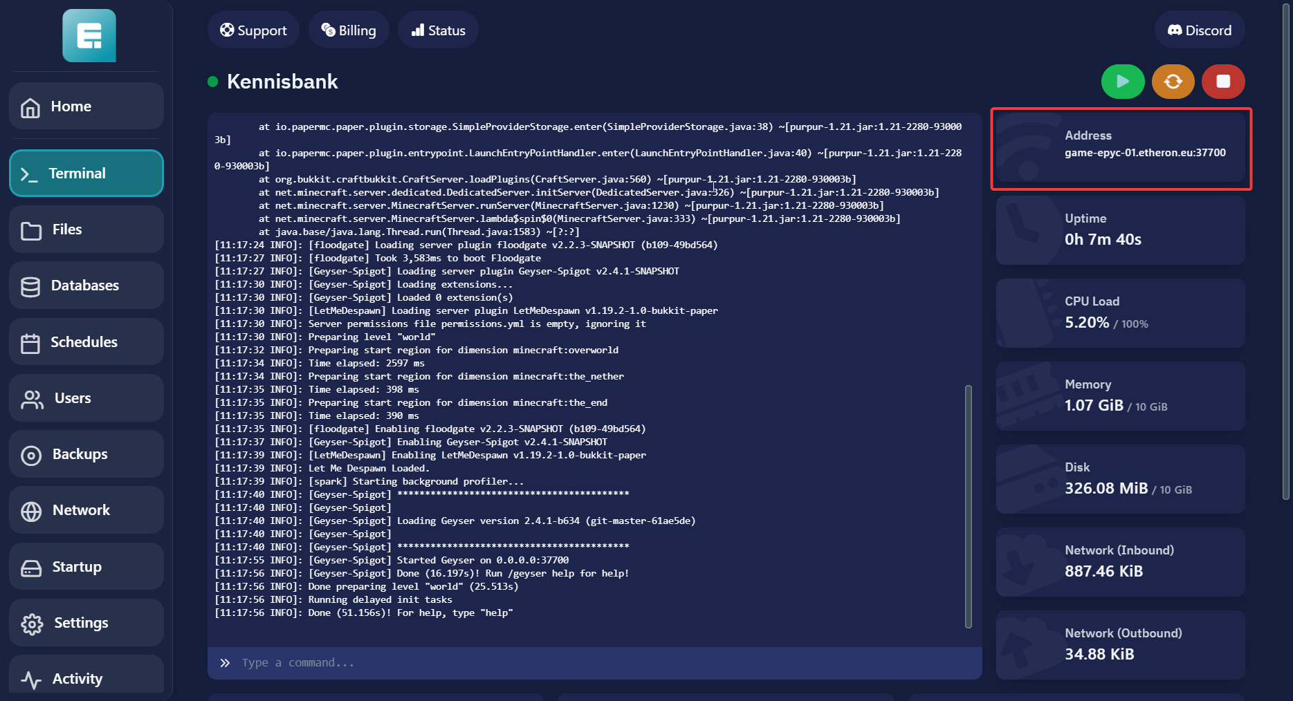 Navigeer naar jouw gewenste server op het Gamepaneel.
